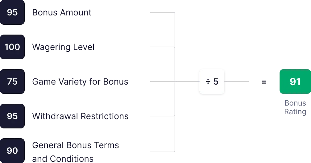 Kui boonus sisaldab keskmisest suuremaid summasid raha, tasuta keerutusi või žetoone, võime lisada lisapunkte.