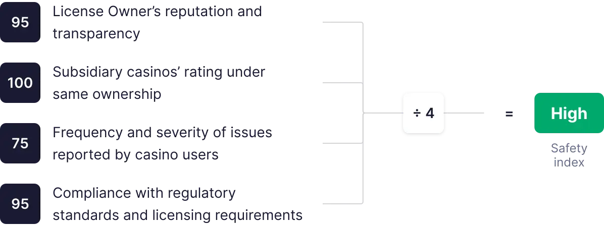 Hindame kasiino turvalisust nelja kriteeriumi alusel (2 individuaalset ja 2 omavahel seotud), millest igaüks saab hindeks 0 kuni 100. Hinded liidetakse, võetakse keskmine ja saadakse lõplik turvalisuse indeks.